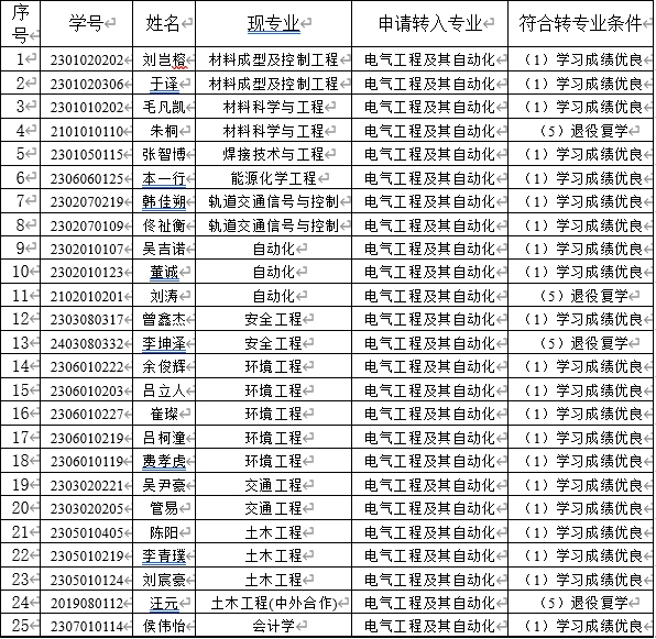 2024年本科转专业同意转入学生名单公示,名单见下表(排名不分先后)。