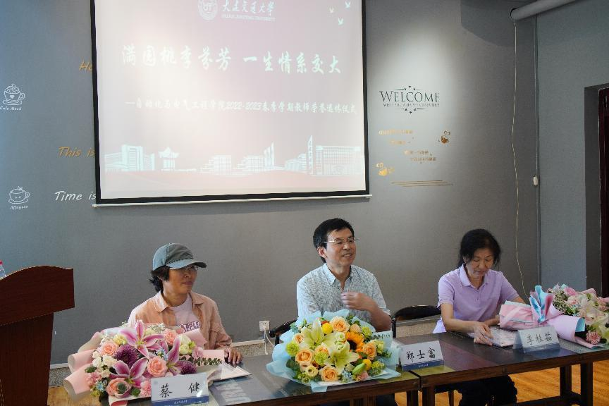 学院党总支书记叶凯衷心感谢三位教师工作期间的敬业、乐业,对他们为学院的付出给予充分肯定和认可,并希望因工作结缘交大的老师们一生情系交大,祝愿他们生活安康顺遂。她还号召学院中青年教师作为学校、学院未来事业发展的接力者和奋斗者,继承和发扬优良传统,修师德、长才干、尽责任,脚踏实地,开拓未来,在教学、科研、服务、管理等工作中做出更大的贡献,做学生为学、为事、为人的“大先生”。