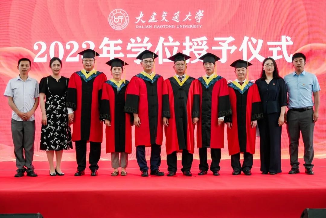 在场毕业生身着学位服依次登台,导师代表院长董华军教授、副院长郑祥副教授、电气工程系邓福军副教授、自动化系张旭秀教授、铁道信号与控制工程系王运明副教授、电基础教研中心时维国教授为2023届全体学士学位获得者颁发学位证书、拨正流苏并合影留念。