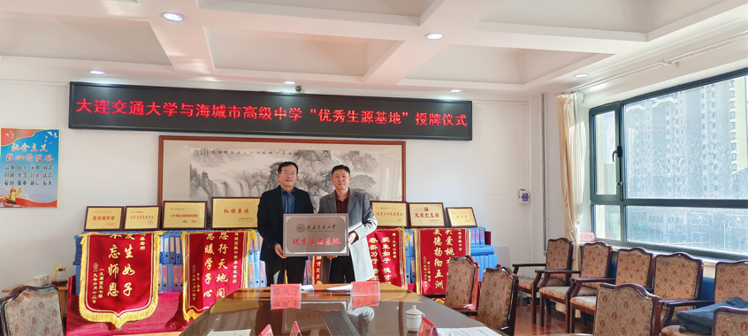 与海城市高级中学签署“优秀生源基地”共建协议,并举行授牌仪式。海城市高级中学校长杨成宇、海城市高级中学副校长宋心宇、海城市高级中学党委办公室主任刘佳赫、办公室主任邵昆,政教处主任谢琳,教务处主任王伦,日本三级片