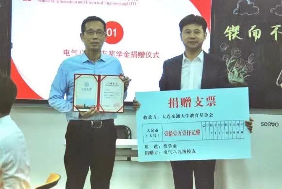 电气八九级校友代表李东辉向学校捐赠了奖学金支票,日本三级片
