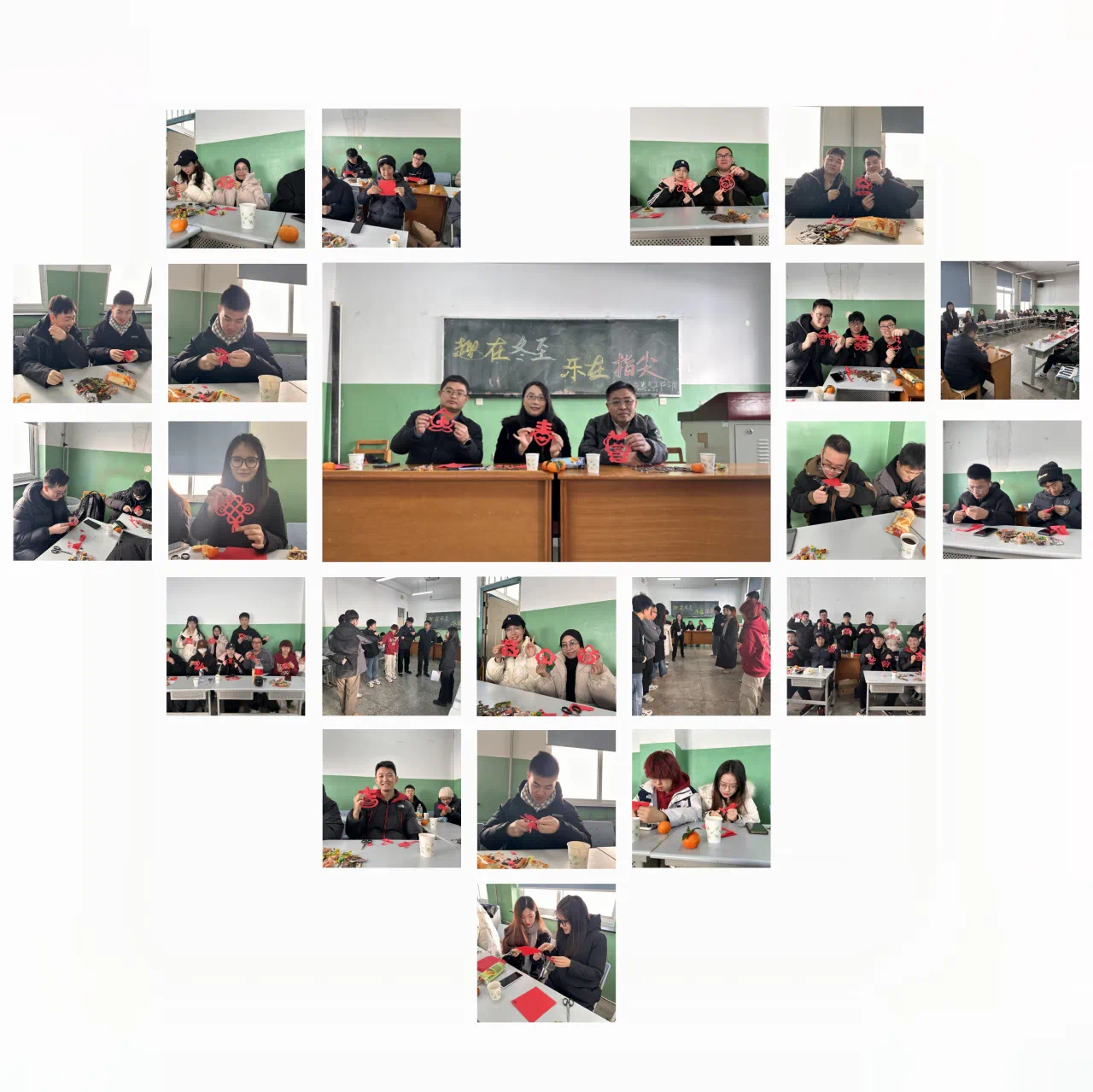 举办冬至剪纸活动,本次活动由学院研究生会策划组织,学院党委书记叶凯、团委书记程飞、研究生辅导员孙贵雄到场参与,研究生会徐东临主持本次活动。