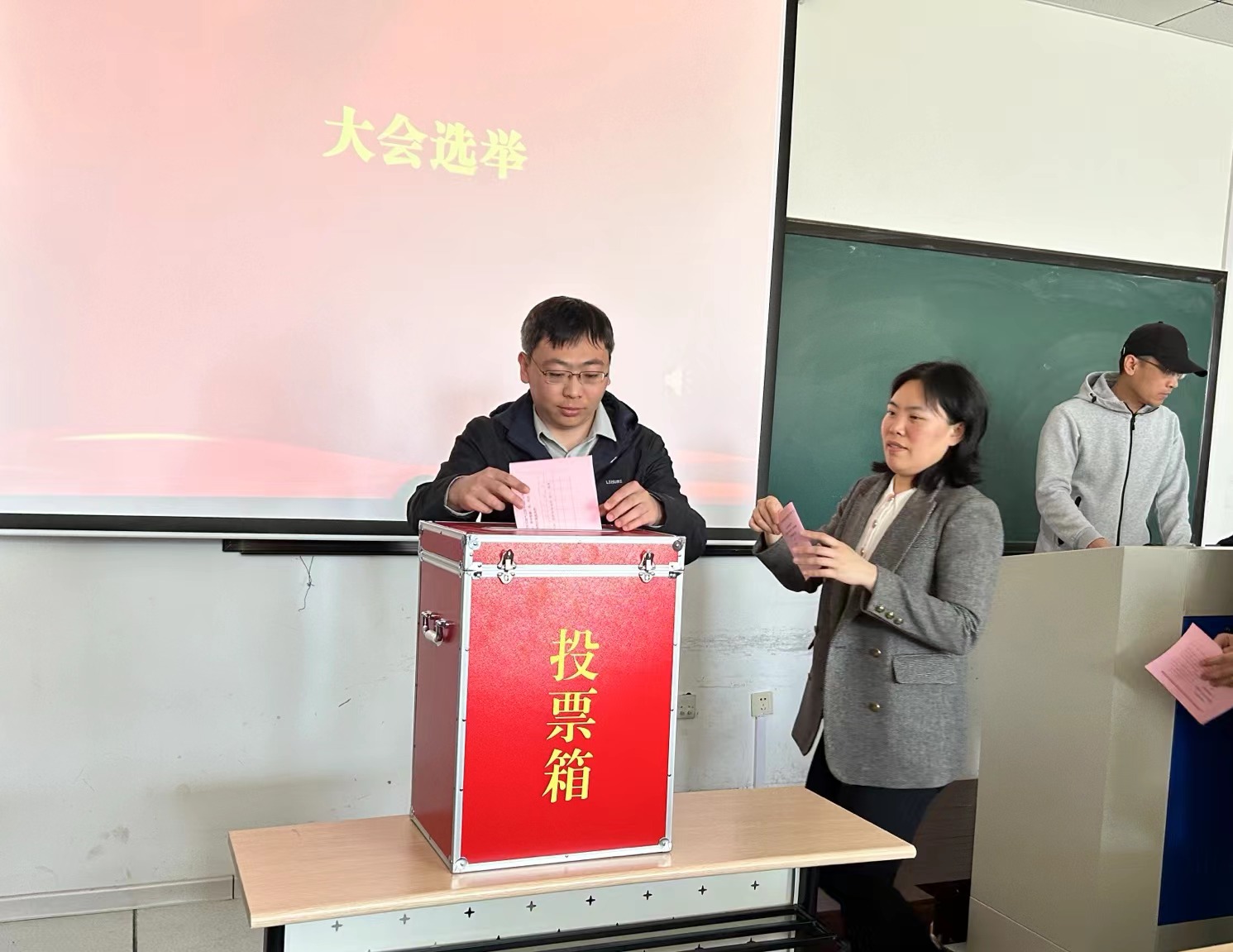 按照既定会议议程,大会通过无记名投票的方式选举产生了新一届工会委员,刘杨、刘洋、陈梦华、徐传芳、程飞五名同志当选。会后召开的第一次全体会议,选举产生了工会主席、副主席,确定了委员分工等。