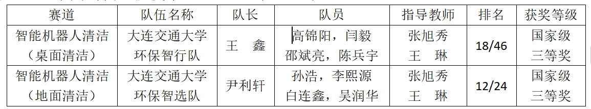 的两支学生队伍首次参赛便表现出色,分别在智能机器人清洁(桌面清洁)和智能机器人清洁(地面清洁)两个组别中获得了国家级三等奖的好成绩。
