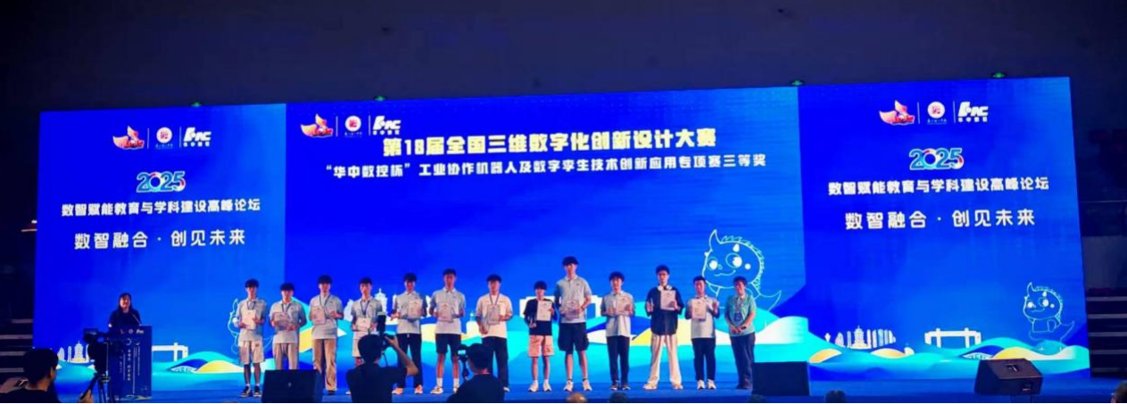 2025年8月18日-20日,由全国三维数字化创新设计大赛组委会主办的第18届全国三维数字化创新设计大赛“华中数控杯”工业协作机器人及数字孪生技术创新应用专项赛全国总决赛在厦门理工学院举办,学院本科生团队表现优异,斩获全国三等奖1项。