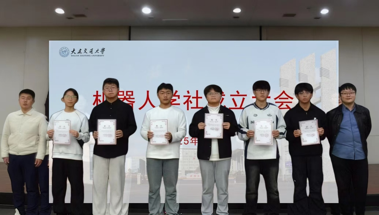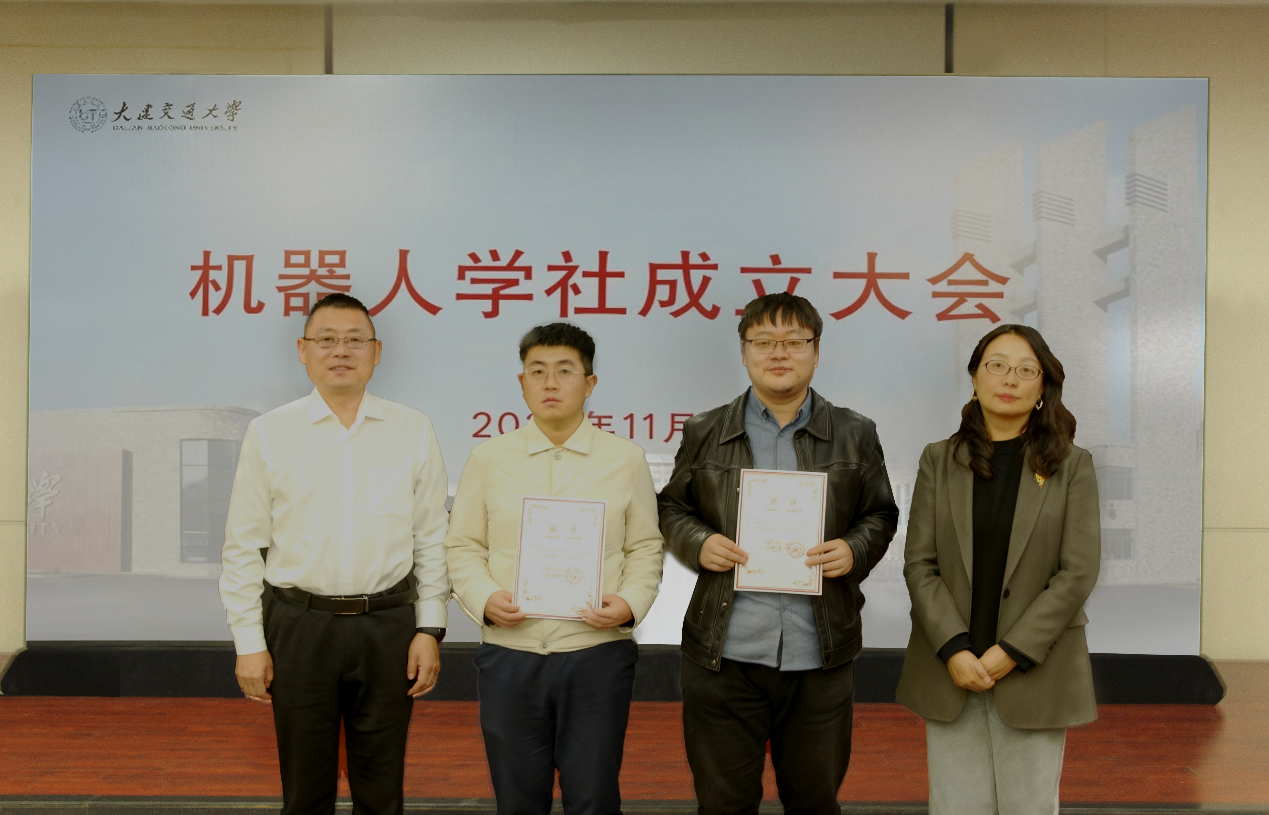 于旅顺口校区东区图书馆报告厅召开机器人学社成立大会。学院党委书记叶凯、院长李荣华、党委副书记闻竹、副院长冯庆胜、院长助理梁天添、自动化系教师王琳、刘英和、铁道信号与控制工程系教师刘杨出席本次会议。本次会议由团委书记程飞主持。