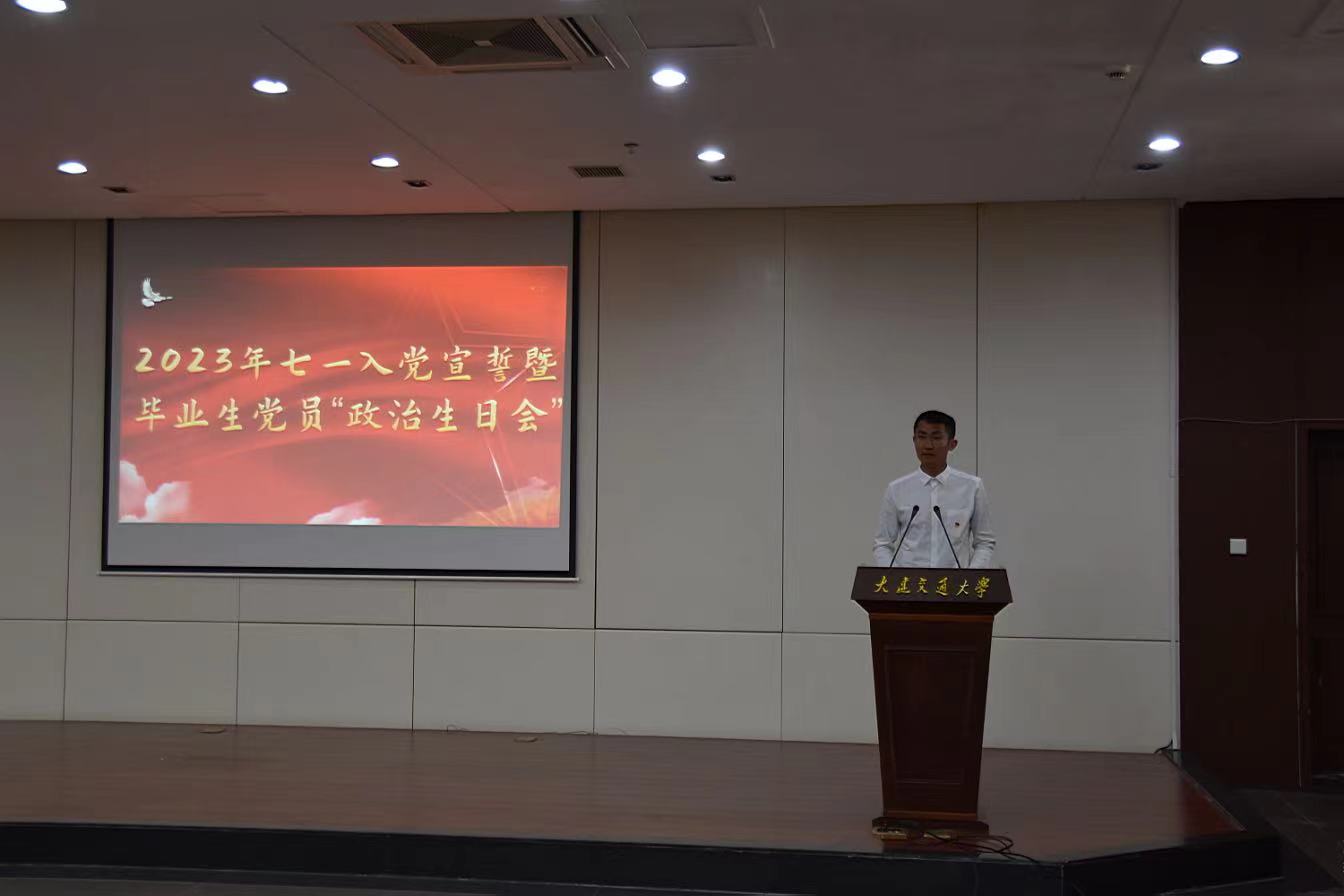 随后,毕业生党员代表孙泽锦代表2023届全体毕业生党员发言,他首先表达了对学院领导老师们辛勤工作、无私奉献的感激之情,回顾了入学以来,秉承全心全意为人民服务的宗旨,在即将走向新征程的时刻,更要牢记作为一名共产党员的初心和使命,做社会的栋梁之才,为母校增光添彩。