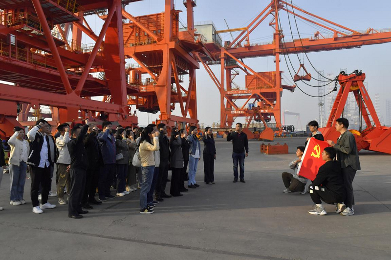 泉水基地的码头,师生党员重温习近平总书记关于东北、辽宁振兴发展的重要讲话精神和指示批示精神,近距离感受了重工装备在东北振兴、辽宁振兴新突破三年行动中的积极作为。随后,全体党员面对党旗,重温入党誓词,一句句誓词雄壮豪迈,一声声誓言铿锵有力,大家用铮铮誓言宣誓着对党、对人民的忠诚。